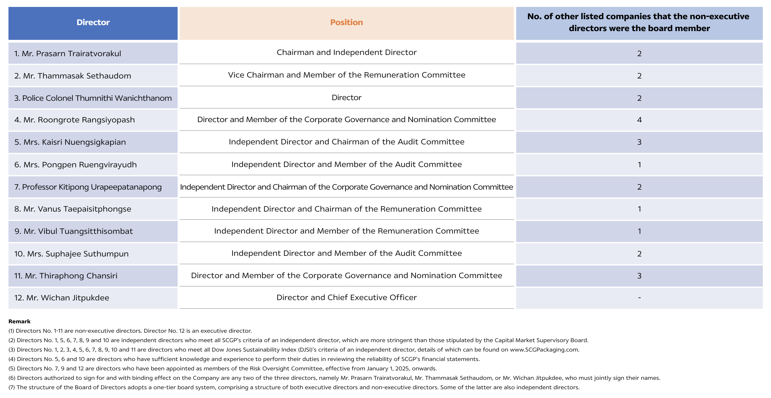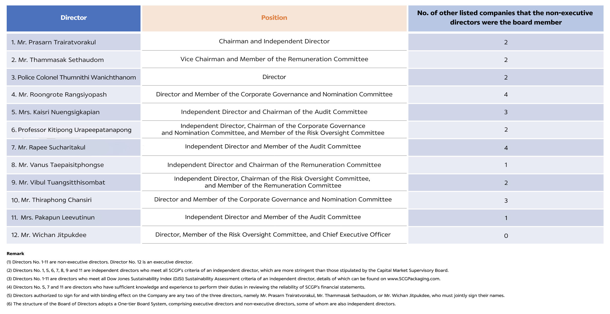 SCGP’s Charter of the Board of Directors allows each director to be a board member of no more than 4 other listed companies. The number of directorships that each non-executive director holds not exceed 4 companies in 2024 as shown in the table below.
