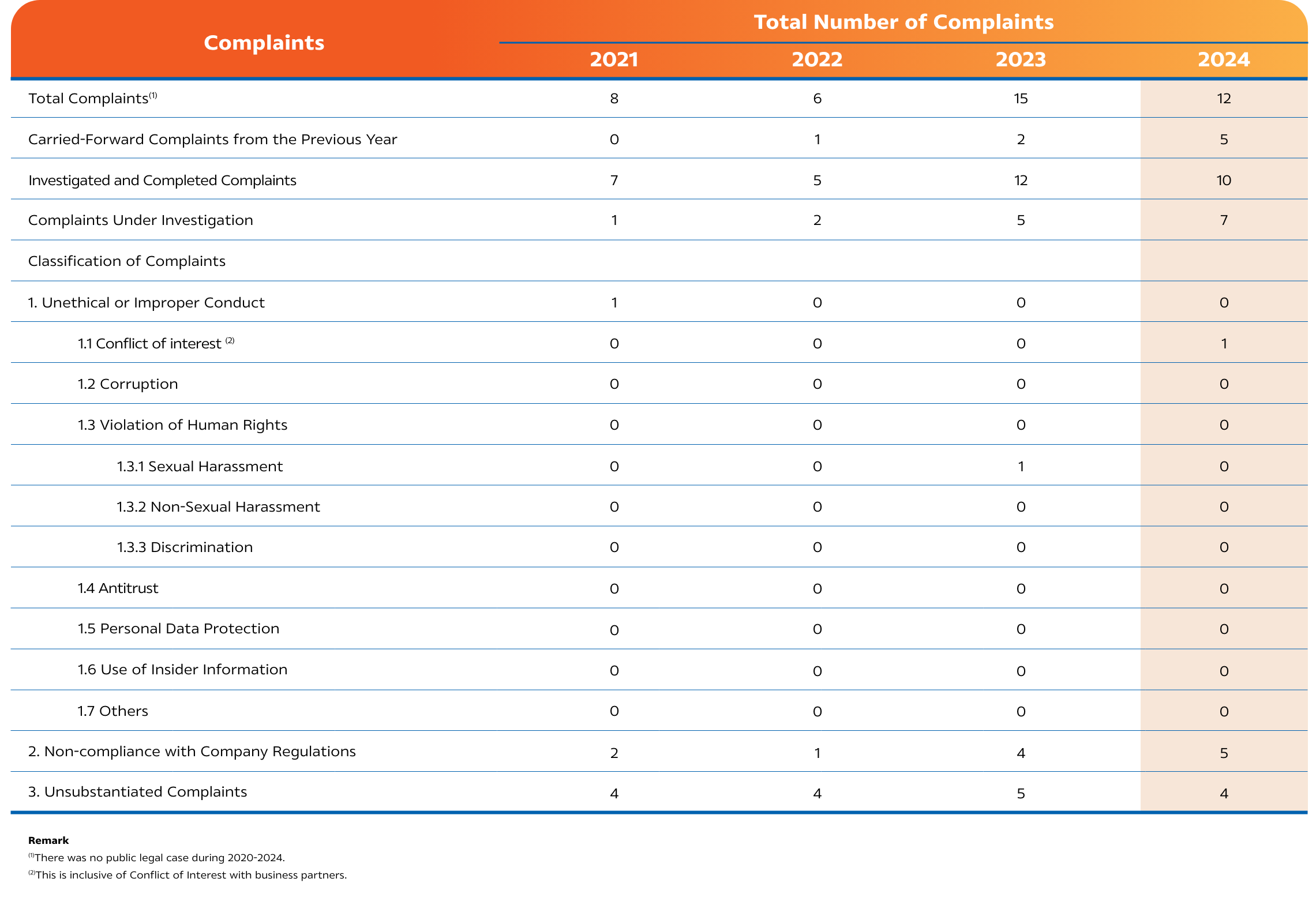 In 2024, there were cases involving non-compliance with laws, SCGP’s regulations, the Anti-Corruption Policy, the Corporate Governance Policy, SCGP’s Four Core Values, the Code of the Conduct or Supplier Code of Conduct as stated below: