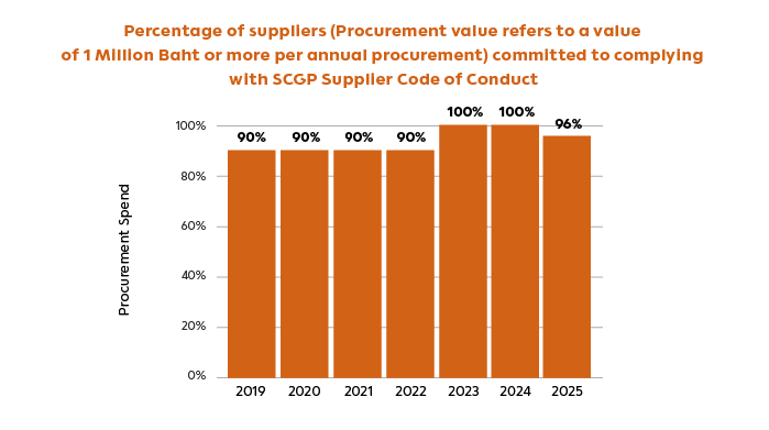100% of suppliers in procurement value committed to complying with SCGP Supplier Code of Conduct.