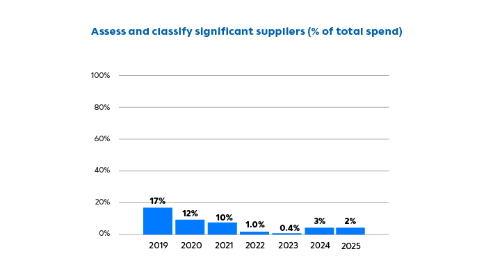 The Ratio of Procurement Spend of High Potential Sustainability Risk Suppliers in 2025
