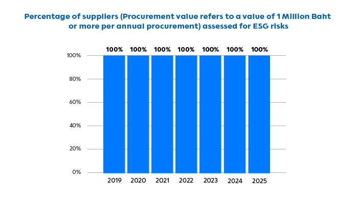 100% of suppliers in procurement value passed the annual Environmental, Social, and Governance (ESG) risk assessment.