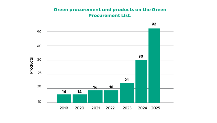 - Purchase products and services according to the Green Procurement List.
