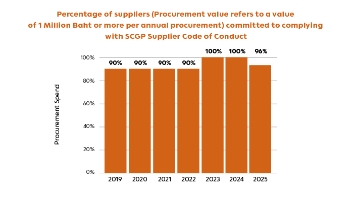 | 100% of suppliers in procurement value committed to complying with SCGP Supplier Code of Conduct. | 96% |