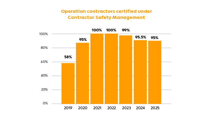 100% of contractors are certified by the SCG Contractor Safety Certification System (SCS) every year