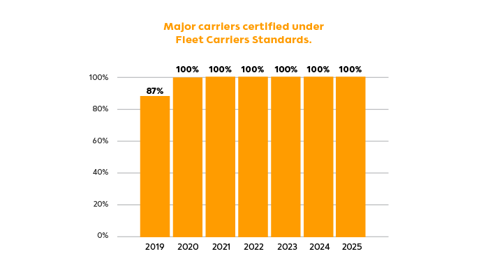 100% major carrier certified under Fleet Carriers Standards.