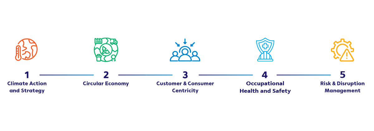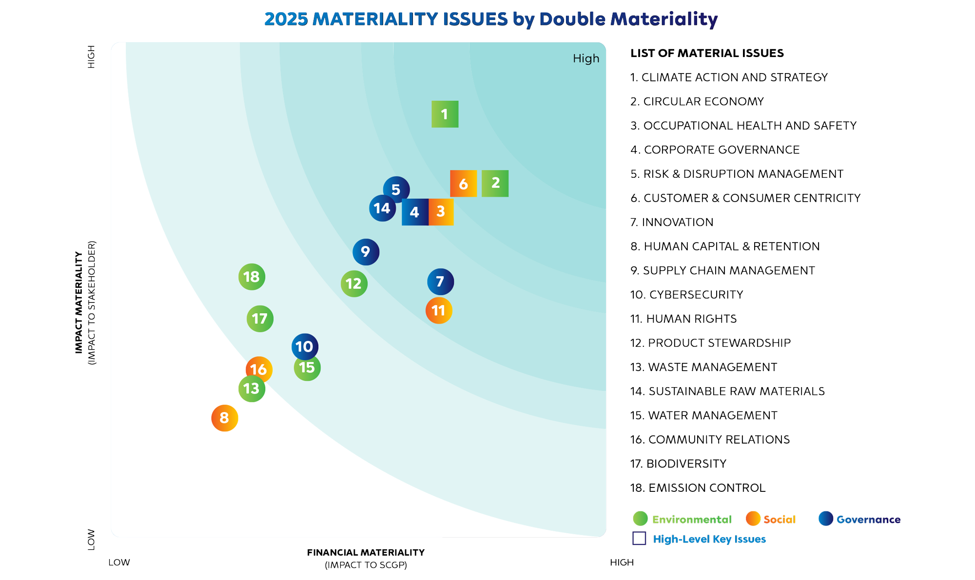 Utilizing the Double Meateriality method, the review concluded that SCGP identified four material sustainability issues in 2025 which are as follows: