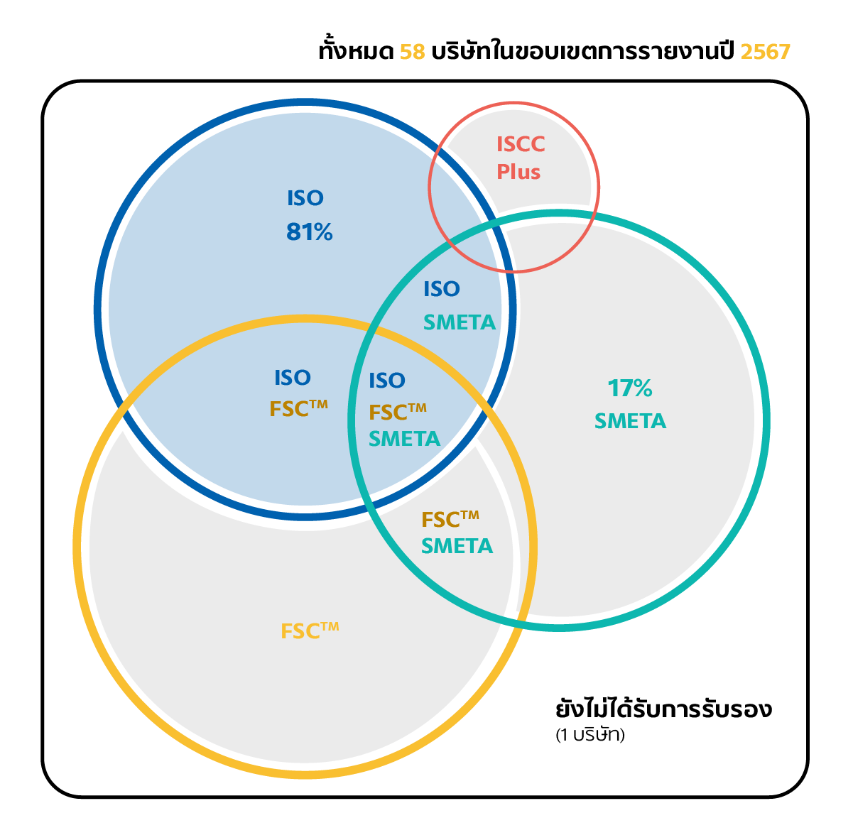| 81% | ได้รับการตรวจสอบผ่านมาตรฐานระดับสากล (ISO 14001) 47 บริษัทได้รับการตรวจสอบผ่านมาตรฐานระดับสากล (ISO 14001) |