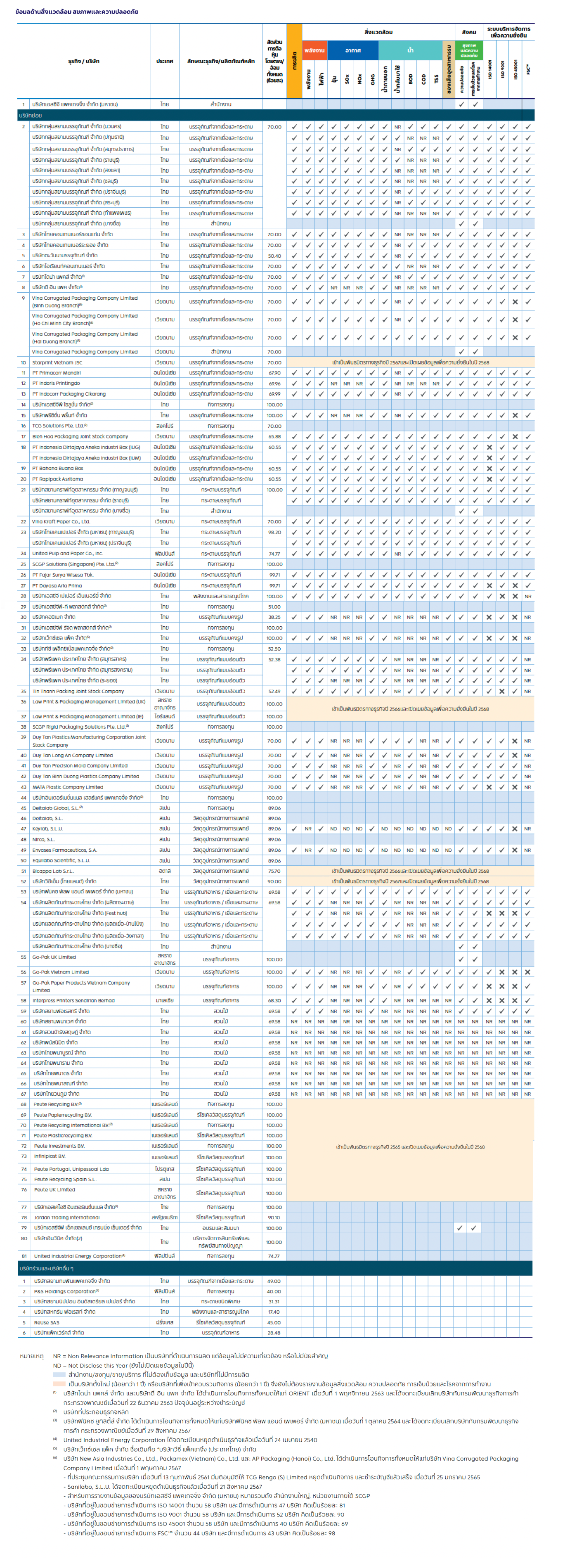 | บริษัทเอสซีจี แพคเกจจิ้ง จำกัด (มหาชน) บริษัทในกลุ่มกระดาษบรรจุภัณฑ์ทั้งหมด (ไทยและต่างประเทศ) บริษัทในกลุ่มบรรจุภัณฑ์จากเยื่อและกระดาษทั้งหมด (ไทยและต่างประเทศ) บริษัทสยามนิปปอน อินดัสเตรียล เปเปอร์ จำกัด |