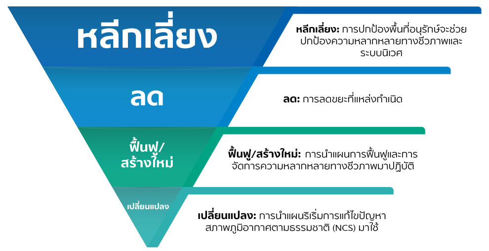 ด้าน Nature Positive เพื่อหยุดยั้งและฟื้นฟูความสูญเสียธรรมชาติ ภายในปี 2573 โดยใช้ปี 2563 เป็นปีฐาน และมุ่งให้เกิดการฟื้นฟูอย่างสมบูรณ์ (Full Recovery) ภายในปี 2593 เพื่อให้แผนการดำเนินการเป็นไปอย่างมีประสิทธิภาพ