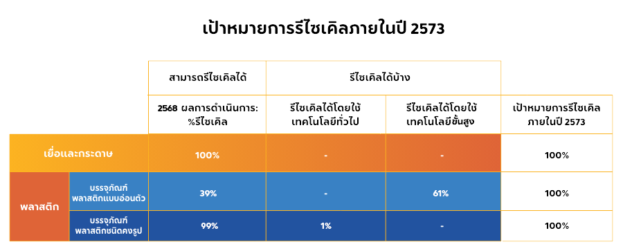 100% ที่สามารถใช้ซ้ำ รีไซเคิล หรือสลายตัวได้ ภายในปี 2573