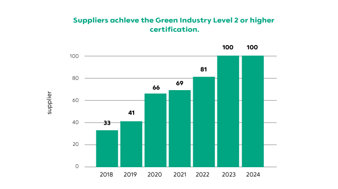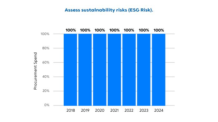 100% suppliers in procurement value pass the annual ESG risk assessment every year.