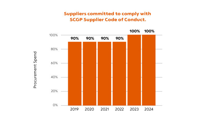 100% Suppliers in procurement value come from suppliers who commit to comply with SCGP Supplier Code of Conduct