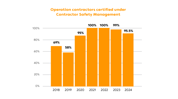 100% Operation contractors certified under Contractor Safety Certification System