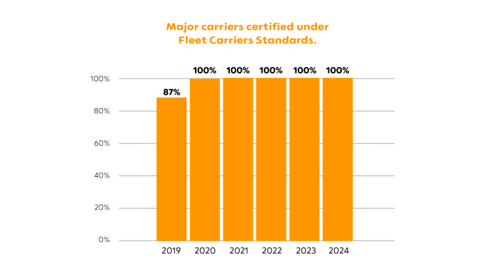 100% major carrier certified under Fleet Carriers Standards.