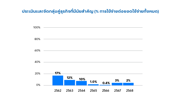 พิจารณานำผลจากการวิเคราะห์การใช้จ่ายและการประเมินคู่ธุรกิจมาจัดกลุ่มคู่ธุรกิจ เพื่อบริหารจัดการคู่ธุรกิจอย่างมีประสิทธิภาพตามความสำคัญและความเสี่ยง