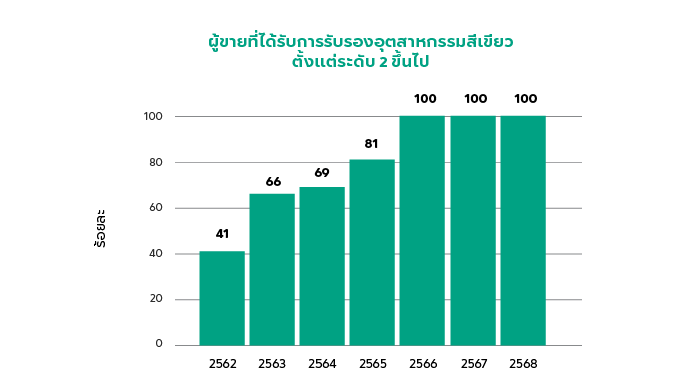 | คู่ธุรกิจร้อยละ 100 ของมูลค่าการจัดหา ผ่านการประเมินความเสี่ยงด้านสิ่งแวดล้อม สังคมและบรรษัทภิบาล | ร้อยละ 100 |