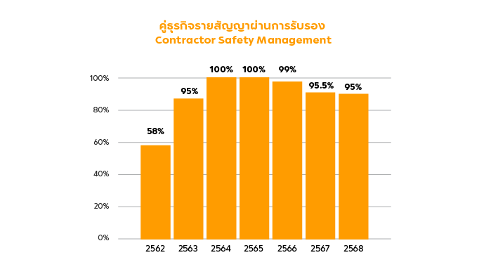 คู่ธุรกิจรายสัญญา ร้อยละ 100 ผ่านการรับรองความปลอดภัย (SCG Contractor Safety Certification System: SCS) ในทุกปี