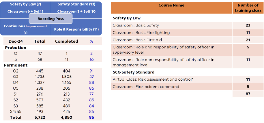 ในปี 2567 พนักงานของ SCGP จำนวน 85% ได้รับการฝึกอบรมในประเด็นด้านความปลอดภัยเฉพาะทางแล้ว